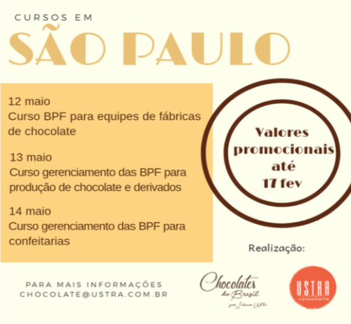 Ela montou esse curso especialmente para fazedores de chocolate, seus funcionários e agora também lança o terceiro com foco na confeitaria com chocolate. Informações pelos perfis de Instagram @ustra.consultoria e @chocolatenobrasil
